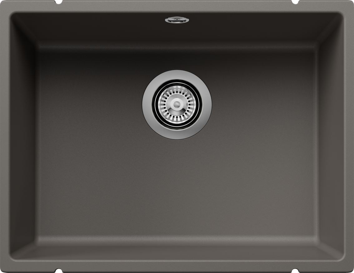 Milky patches can soon show up on your stylish dark sink. These are caused by limescale deposits, which can vary hugely from place to place, and depending on the state of your water pipes. Such stains also pick up deposits from substances like tea or coffee, and are thus responsible for discolouration. But all this isn’t as bad as it sounds. Luckily, BLANCO ANTIKALK, a little vinegar-based cleaner or diluted citric acid and hot water can come to your rescue. The limescale will dissolve if you clean your kitchen sink thoroughly with these substances. If you don’t want to constantly have to contend with unsightly marks, be sure to dry your sink off with a microfibre cloth after every use. Doing this will prevent the limescale from occurring in the first place.