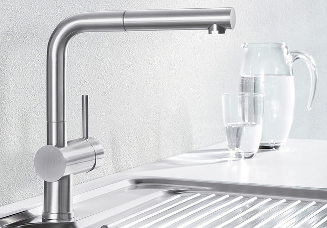 Generally speaking, our mixer taps are easy-care and hygienic. This is thanks to their smooth surface, which allows hardly any dirt to settle on it. However, mixer taps do benefit from regularly cleaning. It doesn’t take much effort, but it needs to be done frequently. Take a mild cleaning agent and go over the mixer taps a few times with the soft side of a sponge. Now rub them dry with a microfibre cloth, and you’ll see that your mixer taps are back to being a stand-out feature of your kitchen once again, in just a few simple steps.