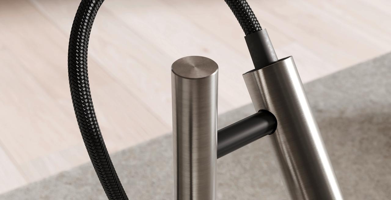 At the heart of LUNEOO S is a sleek, mobile spray head that seamlessly connects to a minimalist pillar. It docks onto the tap body with magnetic precision and features a flexible braided hose, ensuring smooth maneuverability and an unlimited operating radius.